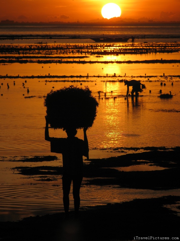gathering plants at sunset