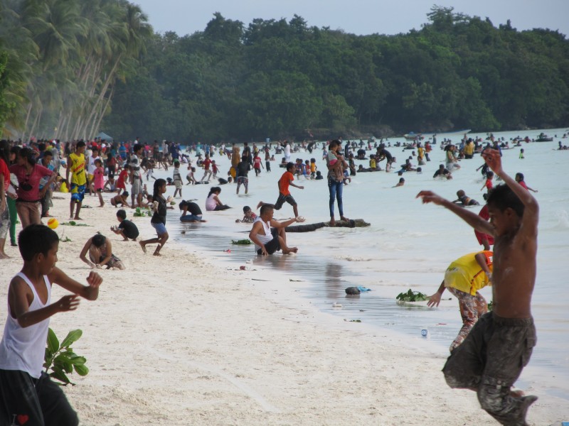 Beach crowded with locals on a Sunday