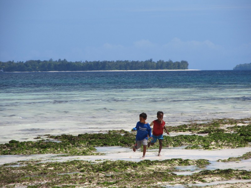 Boys running on the beach