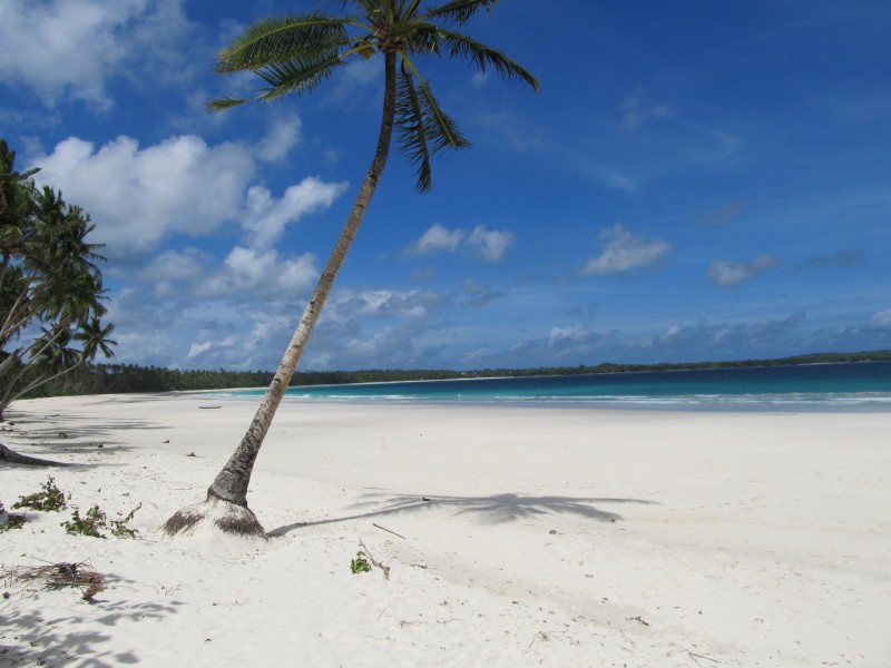 White sand beach with palm tree