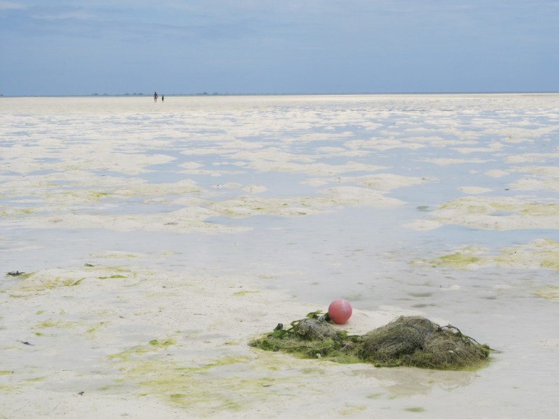 Fishing nets on the beach at low tide